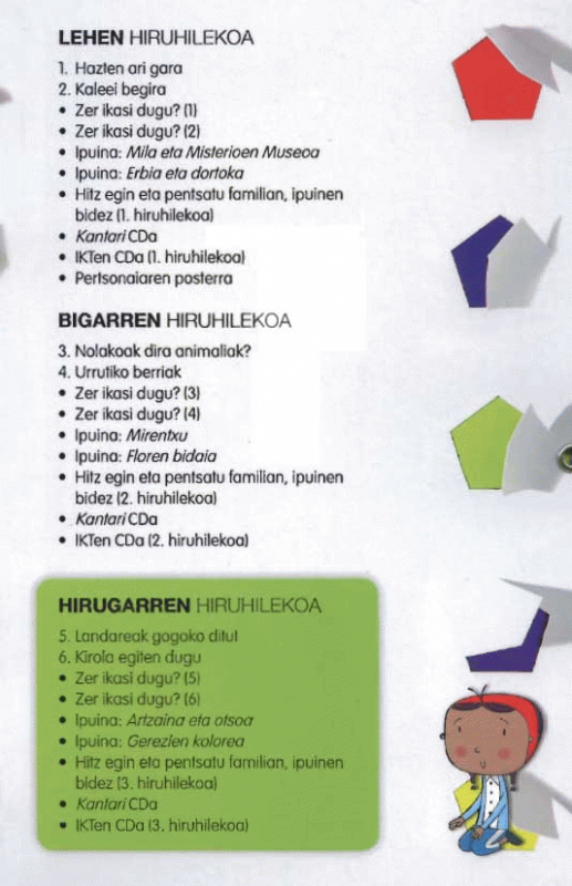 Kolore : 5 urte, Hirugarren hiruhilekoa / [koakernoak: Montserrat Duran...[et al.]; "Gerezien kolorea" ipuina: Begoña Ibarrola; Hitz egin eta pentsatu familian, ipuinen bidez atala: Amparo Escamilla; koordinazioa eta hizkuntza-aholkularitza: Bakun S.L.]