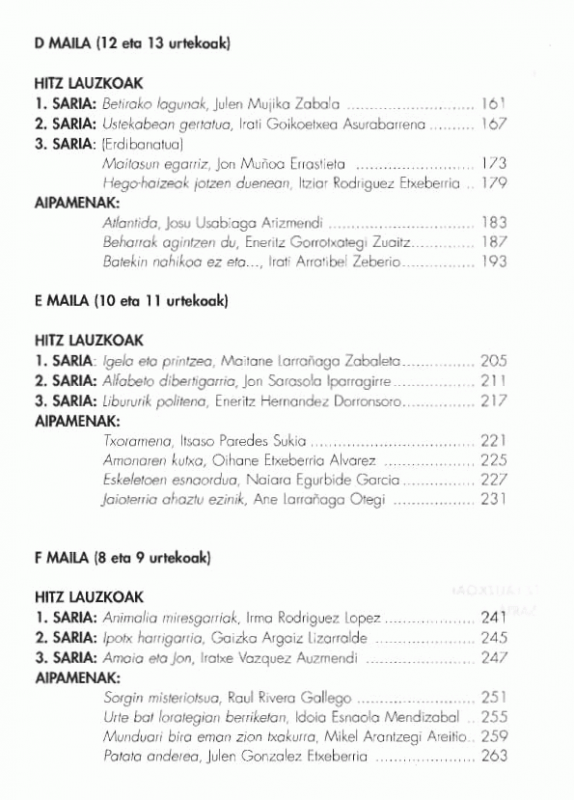 VIII. Beasain idazlehiaketa : 1997 : saritutako idazlanak
