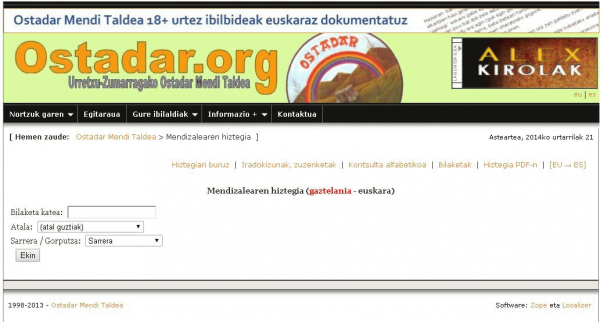 Fitxategi elektronikoaHizkuntza: baqspa Serie(ak): EuskaltermPublication details: Urretxu-Zumarraga , Ostadar Mendi Elkartea , 2014Deskribapen fisikoa: : webguneaGaia(k): Generoa/Forma:Sareko errekurtsoak:
