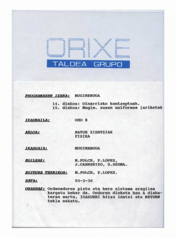 Mugimendua [disketa 5,25´´] / egileak, M. Folch... [et al.]