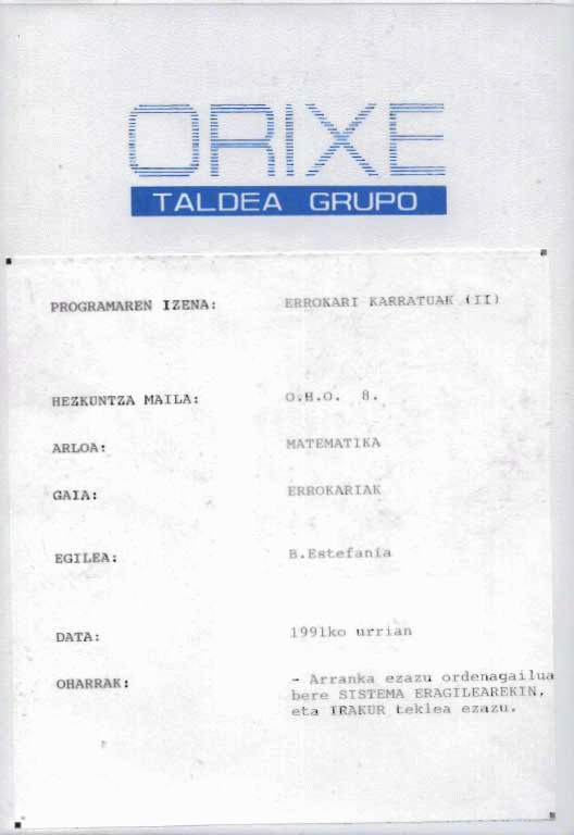 Errokari karratuak (II) [OHO 8] [diskete] / B. Estefanía