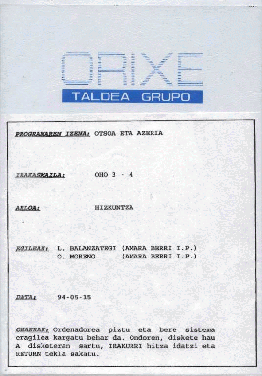 Otsoa eta azeria [OHO 3-4] [diskete] / L. Balanzategi, O. Moreno