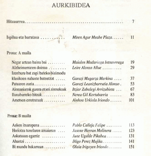 Euskarazko literatura-lan sarituen bilduma. Lan horiek EAEko DBHko ikastetxeetako ikasleek egin zituzten, 2011 ikasturtean. Bilduma Eusko Jaurlaritzaren Hezkuntza Sailak egin du, ikasleak euskara erabiltzera bultzatzeko, euskara balia dezaten hausnarketen eta sentimenduen adierazpide gisa.