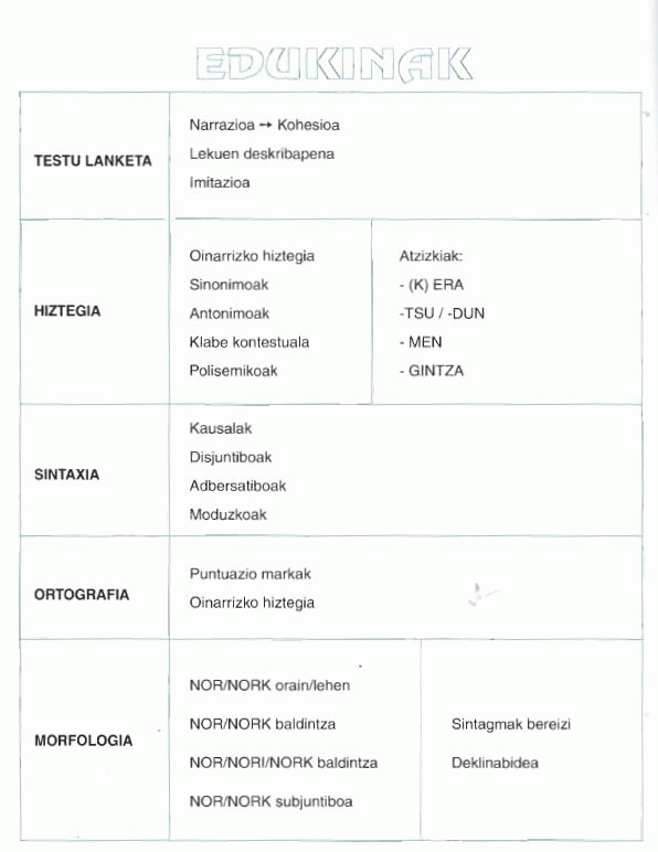 Euskara. Lan-koadernoa : Lehen Mailako Hezkuntza - Hirugarren Zikloa / egileak, Joxean Agirretxe eta Mikele Aldasoro; koordinatzailea, Itziar Elorza; marrazkilariak, Joxemari Telleria ;12