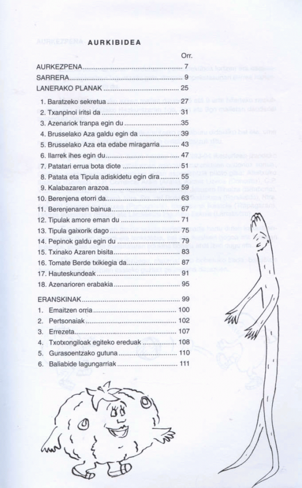 Eskola-material honek heldutasun psikoafektiboa lortzen eta osasun-ohiturak geureganatzen laguntzeaz gain, drogamenpekotasunari aurrea hartzeko abiapuntua izan nahi du. Ipuin-liburuaz gain, hezitzailearentzako gidaliburu didaktiko bat eta, ume txikienekin sei ipuin lantzeko marrazkidun orrialde batzuk ditu.
