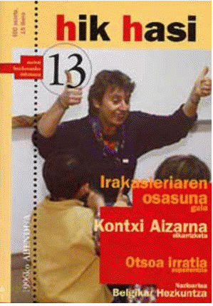 Baliabide jarraituaSerie(ak): Hik hasi aldizkaria (Xangorin Koop. Elk.) ; ; 13Publication details: Lasarte-Oria : Xangorin, 1996Deskribapen fisikoa: 34 or. : z.-b. argk. ; 30 cmISSN: - 1135-4690