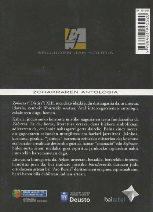 Zoharraren antologia / iztulpena, Patxi Ezkiaga ; berrikusketa, sarrera eta oharrak, Joxe Arregi ; koordinazioa, Joxe Arregi ; [edizioa, Leire Calle Arrinda]
