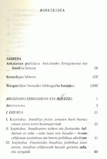 Antzinako Erregimena eta Iraultza / Alexis de Tocqueville ; sarrera, Antonio Hermosa Andújar ; itzulpena, Irati Bereau Baleztena, Sagrario Barandiaran ; Esteban Antxustegi Igartua (arg.)