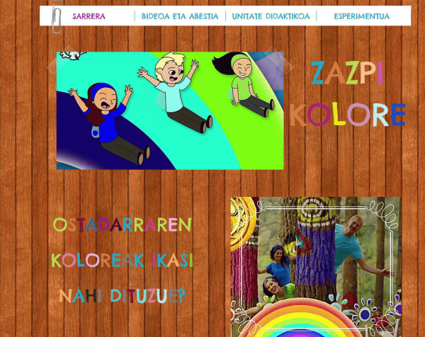 Wix bat egin dugu. Ostadarraren inguruko hainbat jarduera daude. Ostadarraren koloreak lantzeko kanta eta bideo bat sortzeaz gain, unitate didaktiko bat ere prestatu dugu. Unitatean euskara, ingurunea, ikerketa, sormena eta motrizitatea lantzen dira batez ere. Bi azalpen-bideo daude: esperimentu batena eta koreografiarena.