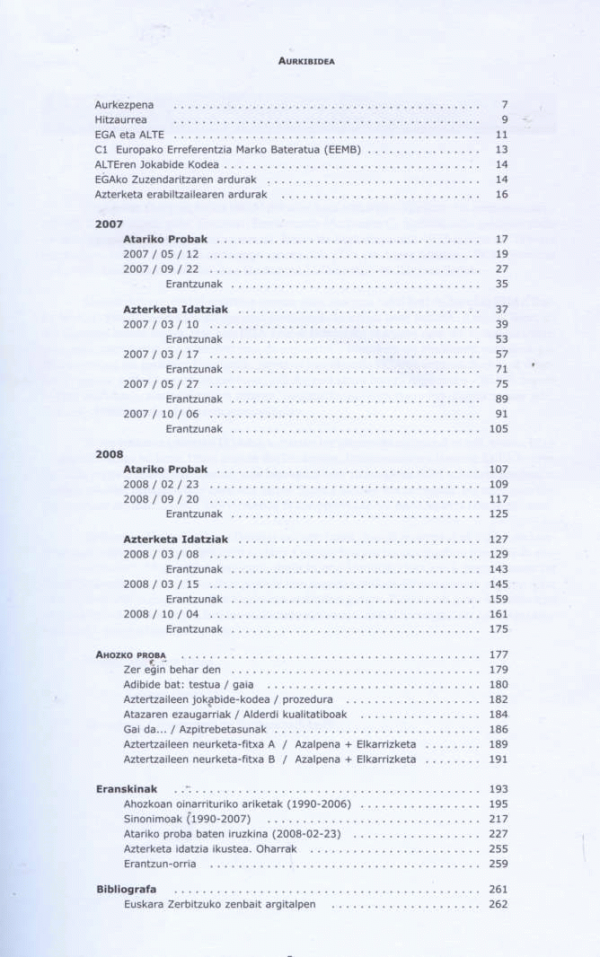 Eusko Jaurlaritzako Hezkuntza, Unibertsitate eta Ikerketa Sailak, bere gain hartua duen EGAren arduraren barruan, agiri-emankizun honetarako prestatzen dituen azterketa-materialak argitaratzeari ekin zion hasieratik beretik. Material hauek plazaratzean, emandako pausoen testigantza zuzena eskaintzeaz gainera, besterik ere izan du xede nagusi: EGA azterketa egiteko ikasten ari direnen eskueran tresna egokia jartzea. Asmo honi jarraituz, oraingoan hamairugarren alea ematen da argitara. Bi urteko bilketa-formulari eutsiz, 2007ko eta 2008ko azterketak bildu dira hemen. Liburu honekin batera saltzen den CDan jasota daude bi urteotako Atariko Probetan eta Proba idatzietan erabili diren entzutezko ulermeneko ariketak eta ahozkoaren ulermenekoak. Urtean bitan egiten dira EGAko deialdiak. Urtean zehar gutxienez hamazazpi urte betetzen dituen edonork eman dezake izena Hezkuntzaren Ordezkaritzetan, Bilbon, Donostian edo Gasteizen.