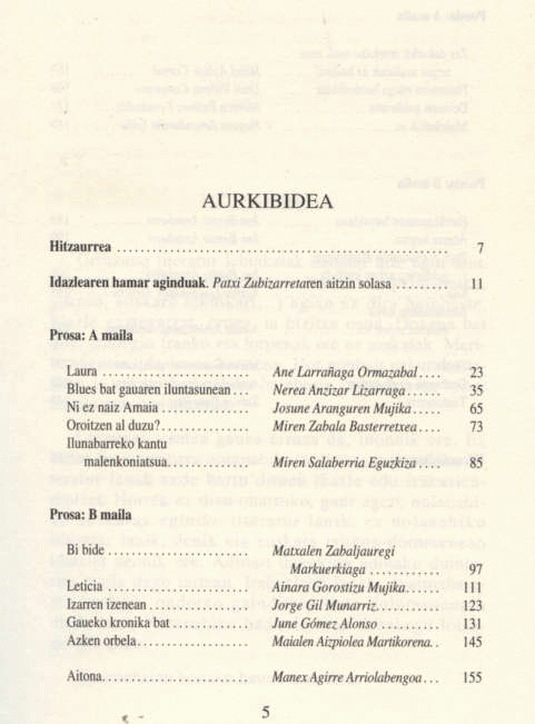 Eskuan duzun bilduma-liburuska 1997ko Urruzuno Literatur Lehiaketan irabazle atera diren lanez dago osatua, Denak ere Irakaskuntza Ertainetan diharduten ikasleek idatziak, horiei zuzendua baitago, bereziki, aipaturiko Literatur Lehiaketa. 1995ekoan 12 lan saritu dira prosan eta beste 12 poesiako sailean.