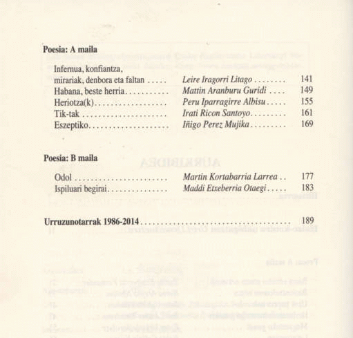 Irakaskuntza ertainetako Urruzuno literatura-lehiaketa 2014 : lan sarituen bilduma / [prestatzaileak, Iñaki Artola, Miren Jule Azurza, Iñaki Iturain eta Santos Izagirre ; hitzaurrea, Euskara Zerbitzua ; aitzin solasa, Urtzi Urrutikoetxea]