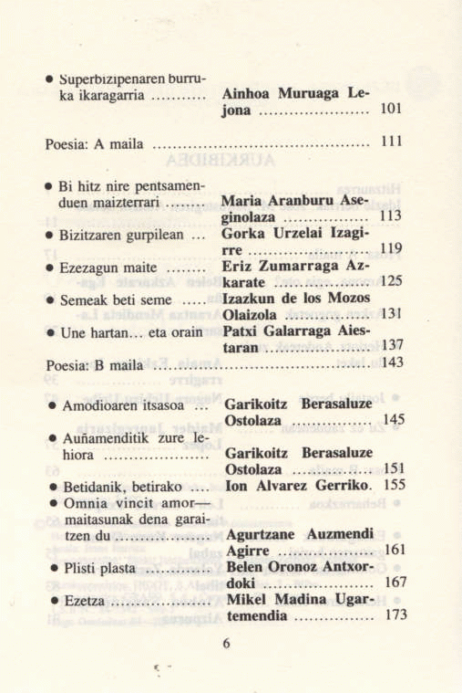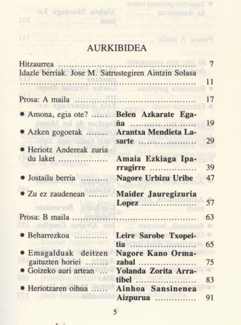 Gaia(k): Generoa/Forma:Sareko errekurtsoak:Adina / Maila: Eskuan duzun bilduma-liburuska 1990eko Urruzuno Literatur Lehiaketan irabazle atera diren lanez dago osatua, Denak ere irakaskuntza ertainetan diharduten ikasleek idatziak, horiei zuzendua baitago, bereziki, aipaturiko Literatur Lehiaketa. 1990ekoan 10 lan saritu dira prosan eta beste 11 poesiako sailean.