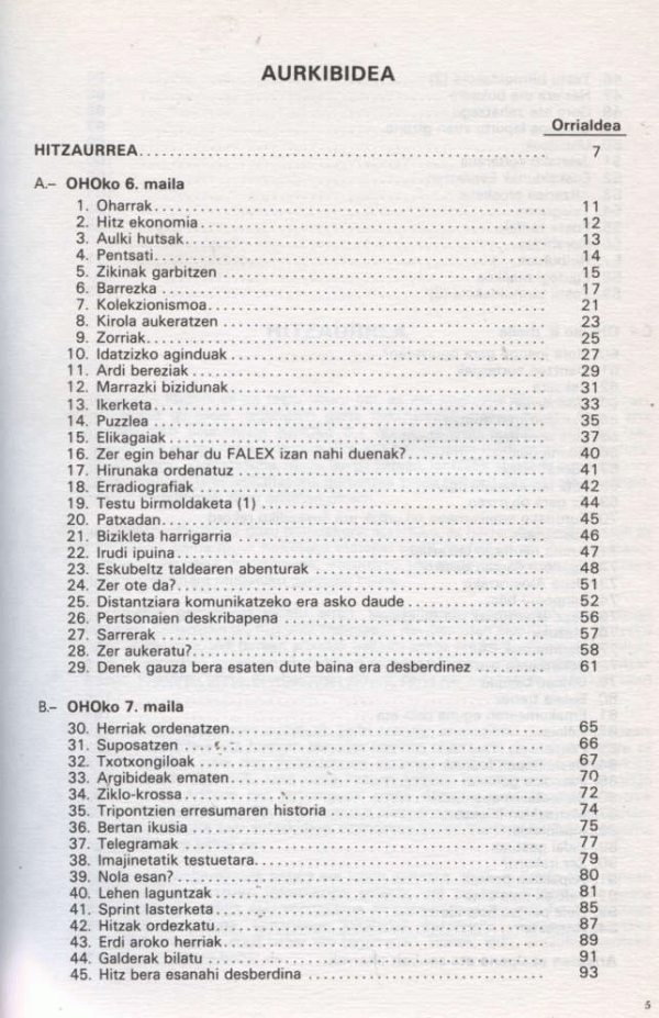 Liburu hau ez da testu liburu bat, ez eta kontsulta liburu bat ere, zuei, irakasle, ikasle eta gurasoei, lagungarri gerta dakizuekeen tresna baino. Orain arte 11-13 urte bitarteko haurrentzat (OHOko 6, 7, eta 8. mailak) euskara lantzeko izan ditugun liburuak eta materialak urriak izan dira, eta hainbatetan helduentzat pentsatutakoak ere erabili ditugu. Zuzentasuna, modu hertsi batean, lantzetik abiatzen ziren ariketez osatuak zeuden batipat. Gramatikaltasuna gordetzea zuten helburu nagusi, eta morfosintaxia irakasteko paradigmak ziren ariketen oinarri. Liburu honetan irakurle, ez duzu horrelakorik aurkituko, ez horren beharrik ikusten ez dugulako, ez horixe, baina mota horretako material ugari dagoenez, gu "lau trebetasunak" -entzutezko ulermena, mintzamena, irakurrizko ulermena eta idazmena- lantzeko eta sakontzeko ariketetara mugatuko garelako baizik.