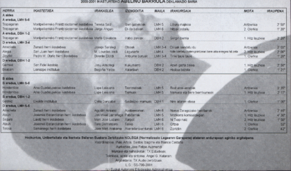 2000-2001 ikasturteko Barriola Deklamazio Saria [Kasetea] / koordinazioa, Iñaki Artola, Santos Izagirre eta Blanca Castaño