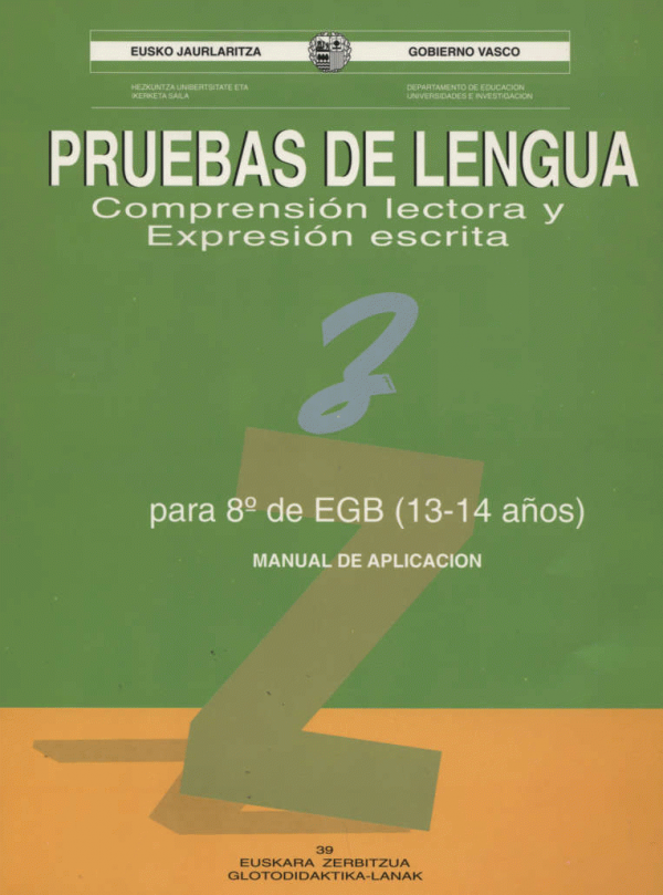 Pruebas de lengua : comprensión lectora y expresión escrita para 8.º de EGB (13-14 años) : manual de aplicación / [autores, Ibon Olaziregi y Josu Sierra]