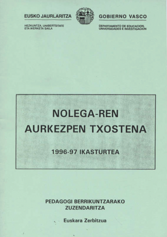 Nolega-ren aurkezpen txostena : 1996-97 ikasturtea / Pedagogi Berrikuntzarako Zuzendaritza, Euskara Zerbitzua