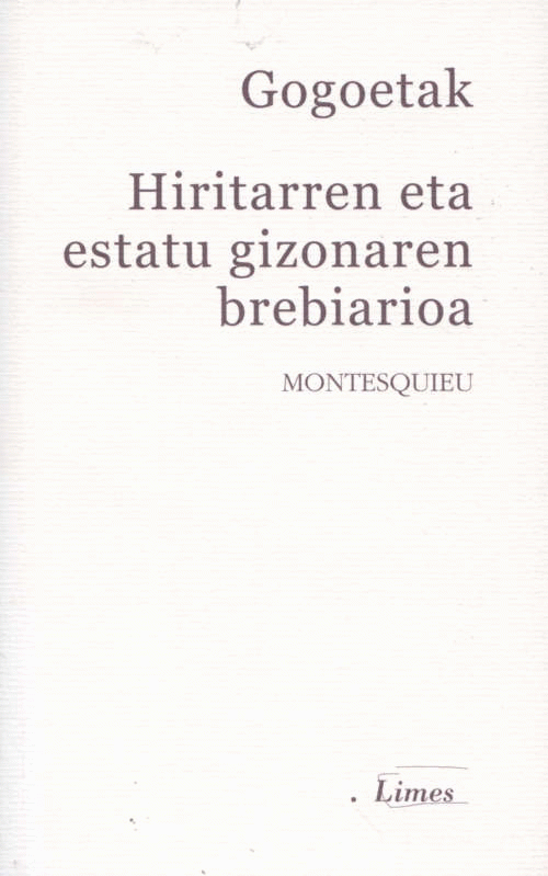 Gogoetak ; Hiritarren eta estatu gizonaren brebiarioa / Montesquieu ; sarrera, Piero Venturelli ; itzulpena, Felipe Juaristi Galdós; Esteban Antxustegi Igartua, Esteban (arg.)