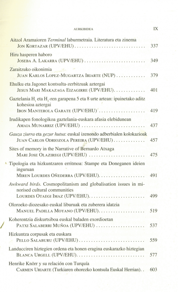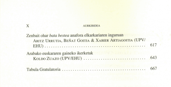 Liburu hau sailkideok UPV/EHUko Euskal Filologiako katedradun zen Henrike Knörr Borràs (1947-2008) irakasleari egin diogun omenaldi xume bat da. Hogeita hamabost kapituluetan zehar egun garatzen ari garen ikerlanaren aleak aurki daitezke, honako alorrak landuz: filologia, dialektologia, literatura, onomastika, hizkuntzalaritza sinkroniko eta diakronikoa, hizkuntzalaritza aplikatua, konputazionala eta psikolinguistika.