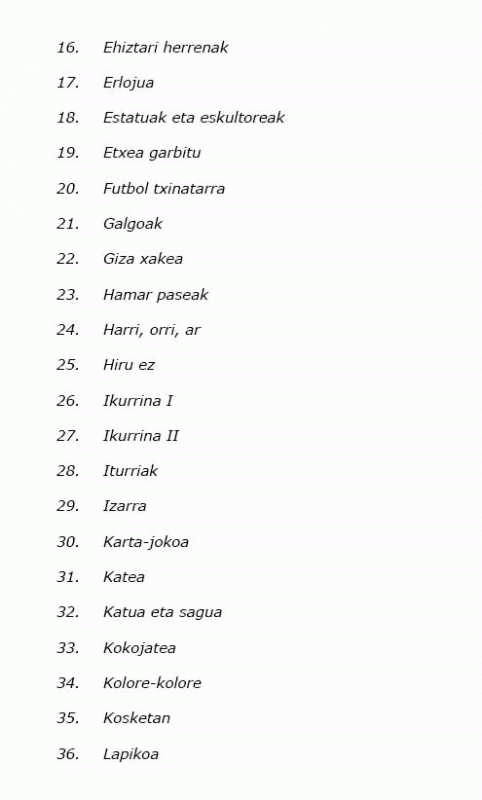 Item hau agertzen den zerrenda(k) IRALEko materialak