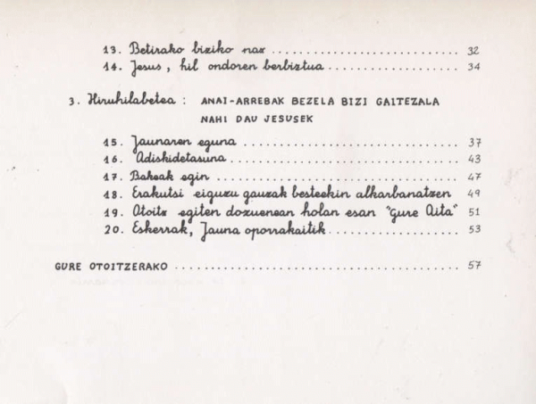 TestuaPublication details: Donostia : Donostiako Elizbarrutiko Irakasle Eskola : Erein , 1986Deskribapen fisikoa: 61 or. : il. ; 19 x 27 cmISBN: - 84-7568-118-2