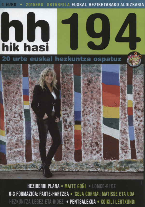Baliabide jarraituaSerie(ak): EIMA 1 (2015eko deialdia) | Hik hasi aldizkaria (Xangorin Koop. Elk.) ; ; 194Publication details: Lasarte-Oria : Xangorin, 2015Deskribapen fisikoa: 42 or. : kol. argk. ; 30 cmISSN: - 1135-4690