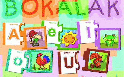 2 zatiko 10 puzzle, aurretik nahiz atzetik jolasteko. 10 bokal ahokagarri, ahozko hizkuntza garatzeko, irakurketa-idazketa prozesura hurbiltzeko eta kontzientzia fonologikoa lantzen hasteko proposamenak. Aurrealdean irudia eta bokala eta, atzealdean, dagokion hitza (larri eta xehez)