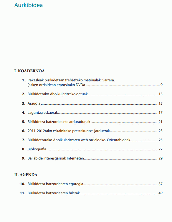 Koaderno honek DVD bat dauka, irakasleak bizikidetza gaietan trebatzeko materialarekin. Horrez gain, koadernoak araudiaren laburpen bat, bibliografia laburra eta Bizikidetza Batzordearen bilkurak jasotzeko egutegi bat ere badauzka.