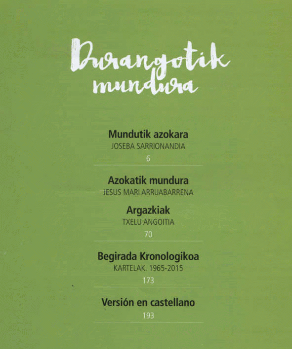 Liburu hau 2015eko azaroan argitaratu zen Durangoko Azokaren 50.urteurrenaren karietara, erakunde hauen laguntzarekin: BBK Fundazioa; Eusko Jaurlaritza; Bizkaiko Foru Aldundia; Gipuzkoako Foru Aldundia; Durangoko Udala