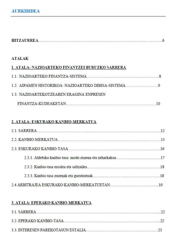 Ikasgai horretan, kanbio-arriskuaren kudeaketa eraginkorra egiteko edukiak irakasten zaizkie ikasleei. Kontuan izanda zer-nolako indarra hartu duten enpresen nazioartekotze-prozesuek azken hamarkadan, gaur egun oso garrantzitsua da nazioartean aritzen diren enpresek finantza-gestio egokia egitea nazioartean. Gai honen inguruan idatzi diren liburu ugari dago, baina euskaraz egindako argitalpenak oso urriak dira. Lan honekin hutsune hori bete nahi izan dugu, ikasleei oinarrizko kontzeptuak ariketa praktikoekin laburbiltzen dituen eskuliburua eskainiz.