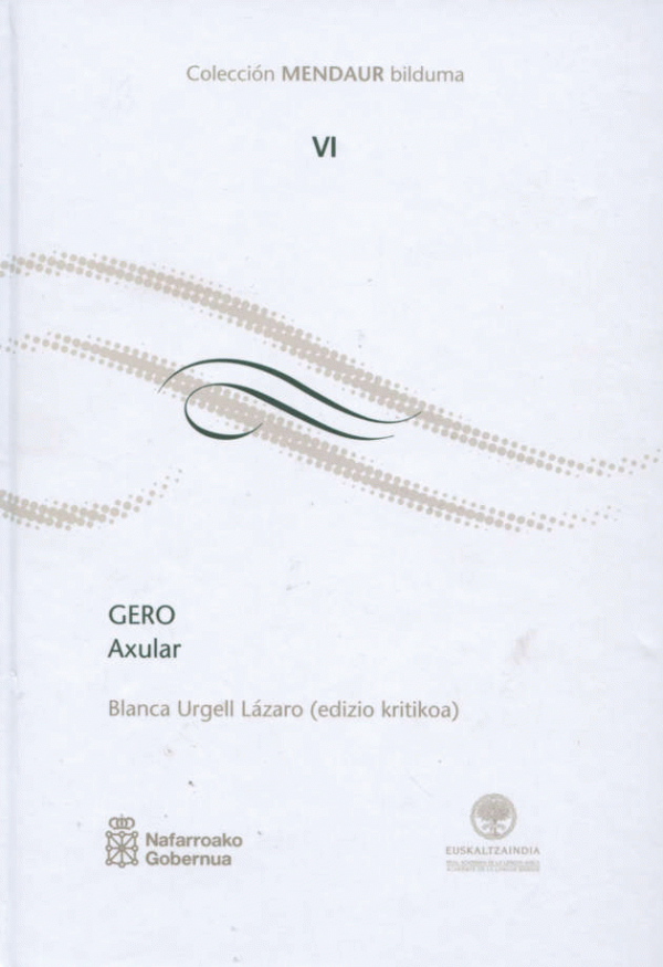 TestuaSerie(ak): Mendaur (Euskaltzaindia) ; ; 6Publication details: Iruña : Nafarroako Gobernua, Hezkuntza Departamentua ; Bilbo : Euskaltzaindia , L.G. 2015Deskribapen fisikoa: XLVI, 387 or. ; 25ISBN: - 978-84-235-3089-2