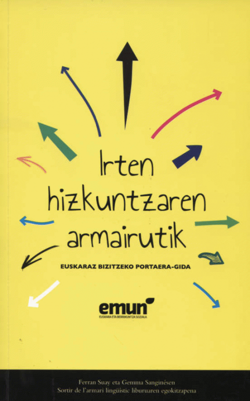 "Irten hizkuntzaren armairutik - Euskaraz bizitzeko portaera-Gida" , Emun kooperatiba: Irten hizkuntzaren armairutik euskal hiztunoi ahalduntzeko baliabideak ematen dizkigun autolaguntza liburua da. Izan ere, nork ez du bizi izan horrelako egoeraren bat? Txikitatik erdaraz egin duzun lagunarekin euskaraz hitz egiten hastea ezinezkoa dela pentsatzea; denak erdaraz ari diren bileran zerbait euskaraz galdetu eta guztien begiradak zugan iltzatuta sentitzea; edo hizketan ari zaizuna aditz egokia ahoratu ezinik dabilela somatu orduko erdarara jotzea. Liburuko protagonistak Bittor, Xabier, Isabel, Paula, Nerea, Khadim eta Itxasne dira. Beraien hizkuntza bizipenei esker gure hizkuntza portaera hobeto ulertuko dugu eta ditugun zailtasunak gainditzeko errezetak jasoko ditugu. Liburu hau Ferran Suay eta Gemma Sanginés psikologoek 2010ean katalanez argitaratu zuten "Sortir de l'armari lingüístic" lanaren egokitzapena da, EMUNek Euskal Herrian eman dituen TELP tailerretako esperientzietan oinarrituta.