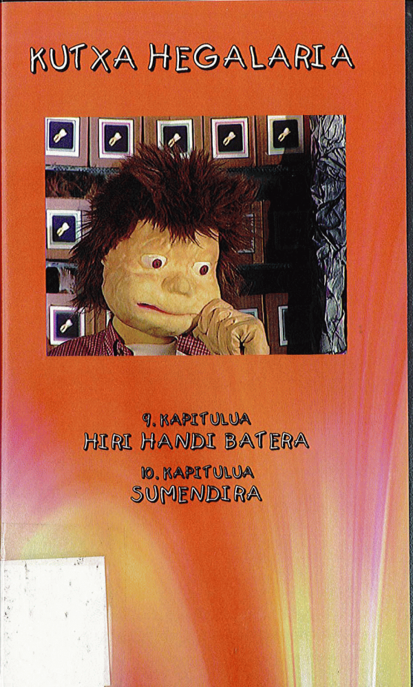 FilmSerie(ak): Kutxa hegalaria ; ; 9-10 kapituluakPublication details: [Gasteiz] : Goiatz multimedia , L.G. 1999 Deskribapen fisikoa: 1 bideo (VHS) 18 min : soin. kol. ; 20 cmGaia(k): Generoa/Forma:Sareko errekurtsoak:Txotxongiloen bizi-emaileak, Zigor Bilbao, Ana Lidia Compañón, Oskar Galán
