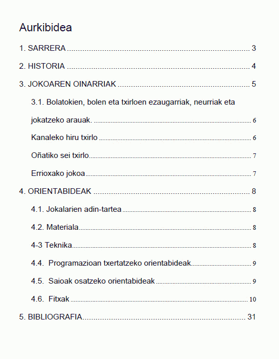 TestuaSerie(ak): IRALE (2014-2015 ikasturtea) | R300 | IRALE (2014-2015 ikasturtea) | R300Publication details: Gasteiz : Irale, 2016Deskribapen fisikoa: 31 or. ; PDF artxiboaGaia(k): Generoa/Forma:Sareko errekurtsoak:Adina / Maila: Orain dela gutxira arte, ohikoa zen gure herri eta auzoetan bola-jokoan aritzea. Ugariak ziren bolatokiak, eta jokatzeko ohitura handia zegoen. Azken boladan, berriz, bolatoki asko desagertu egin dira; beste kasu batzuetan urteko egun berezietan baino ez dira erabiltzen: jaietan, ez ohiko txapelketaren batean, edo erakustaldietan. Eskoletan edo inguruan halakorik baldin badago,animatu zaitezte erabiltzera. Material espezifikorik edo instalakuntzarik ez baldin badago, ez dago arazorik. Betiere, txirlo batzuk eskuratu edo egokitu daitezke eta, pilota edo baloi bat erabiliz, bola-jokoan hasteko aukera izango da. Joko hau erraz eraman daiteke eskolara, frontoian, gimnasioan edo kantxan egin daitekeen aktibitatea baita. Gainera, garatzen dituen gaitasunen aldetik ere oso interesgarria izan daiteke: kontzentrazioa, punteria, estrategia, indarra, etab.