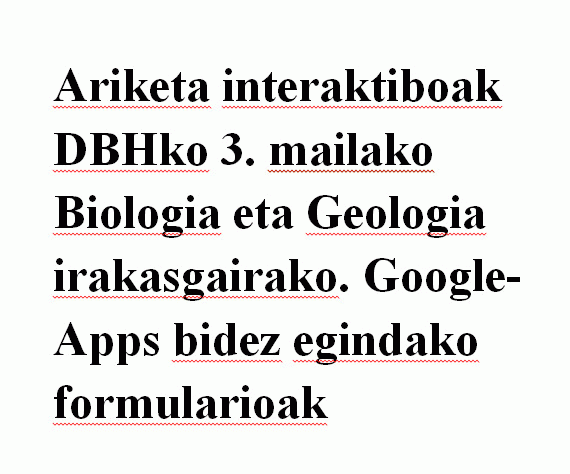 Ariketa interaktiboak DBHko 3. mailako Biologia eta Geologia ikasgairako [Interneteko baliabidea] : Google Apps bidez egindako formularioak / Arrate Arranz