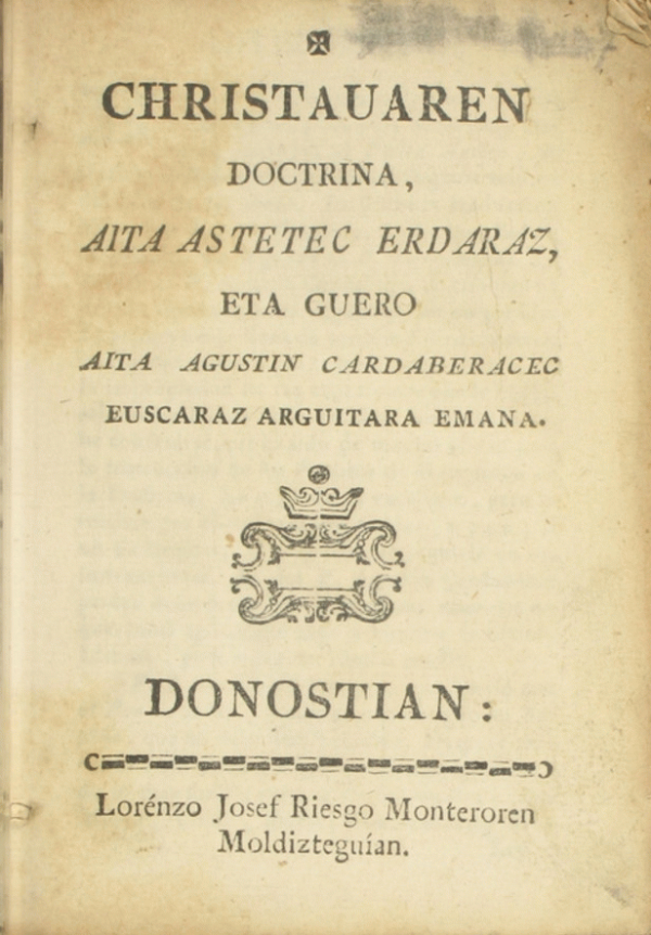 Christauaren doctrina / Aita Astetec erdaraz, eta guero Aita Agustin Cardaberacec euscaraz arquitara emana