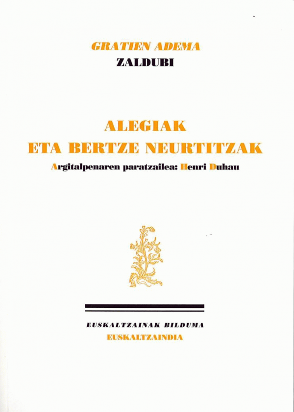 Alegiak eta bertze neurtitzak / Gratien Adema "Zaldubi" ; argitalpenaren paratzailea, Henri Duhau