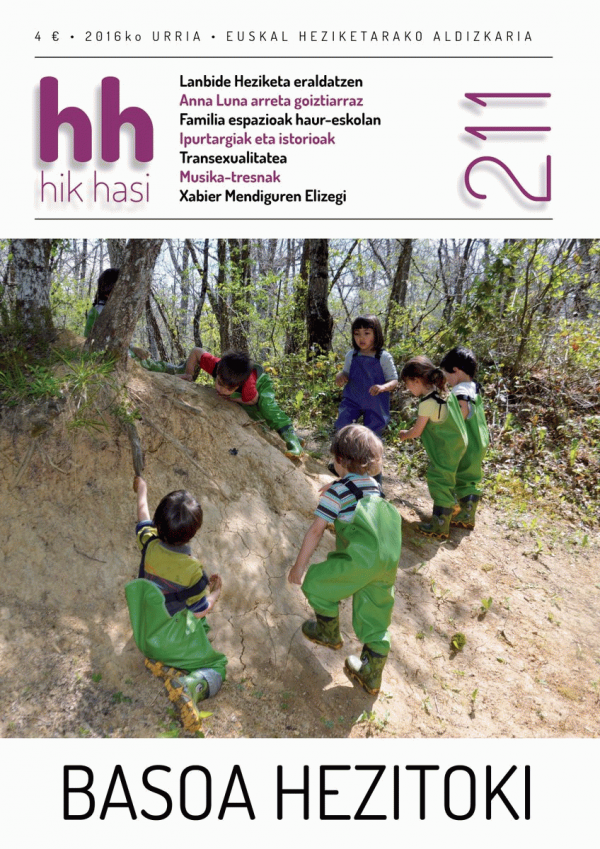 -Editoriala: Gugan bego Imanol Urbieta. -Albisteak -Gai nagusia: Etorkizuna eraikitzen. Lanbide Heziketa eraldaketaren gurpilean -Elkarrizketa: Anna Luna (pedagogoga, psikomotrizista eta arreta goiztiarrean aditua) -Esperientziak: Ozetako Plisti Plasta heziketa gunea: natura heziketarako espazioa -Ekarpenak 1: Kattuka haur-eskola. Familia espazioak: esperientzia xume baten inguruko hausnarketa. Eider Garde Mazkiaran (Kattuka haur-eskolako hezitzailea) -Ekarpenak 2: "Ipurtargien distira. Hezkuntzaz hausnartzeko ipuinak" liburua eta bloga. Ipurtargiak eta istorioak. Joseba Martinez, Noemi Pastor eta Begoña Salcedo (Ingurugela CEIDAko kideak) -Galdeidazu: Aingeru Mayor (Chrysallis-eko lehendakaria eta sexologoa). Nola kudeatu transexualitate egoeran dauden haurren kasuak? -Argitalpenak: -Proposamena: "Musika-tresnak" ikas-materiala: 400 bat instrumentu haurren eskura. Georges Boulestreatu (liburuaren egilea) -Atzeko atetik: Xabier Mendiguren Elizegi (editorea)