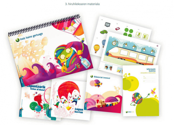 2. hiruhilekoa:2. ARDATZA: OSASUNA ETA DIETA MEDITERRANEOA. Lan koadernoa ( Plastikako laminak / Eranskailuak). Ipuina. Informazio liburua. 3. ARDATZA: PARKE NATURALAK: Lan koadernoa ( Plastikako laminak / Eranskailuak ). Ipuina. Informazio liburua. Material bereziko lamina sorta: inauteriak, artea, egun bereziak. Hiru hileroko informazioaren buletina. Poltsa pertsonalizagarria.