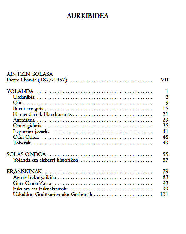 Yolanda / Pierre Lhande ; aintzin solasa, oharrak eta solas-ondoa, Jon Casenave : eta beste euskarazko idazlanak