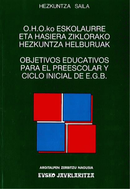 OHOko eskolaurre eta hasiera ziklorako hezkuntza helburuak = Objetivos educativos para el preescolar y ciclo inicial de EGB / Eusko Jaurlaritza, Hezkuntza Saila