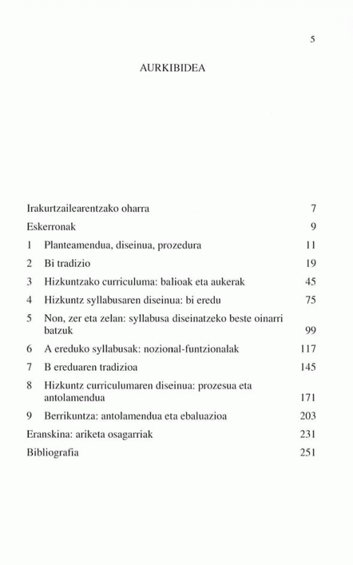 Liburu hau idatzi dudan moduan idatzi baldin badut, zeragatik izan da, gero eta jabetuago nagoelako hizkuntz syllabus berri bat garatu eta plazaratu gura duen edozeini sortzen zaizkion arazoak ez direla edukiari dagozkion kontuak, ezta nagusiki ere. "Iraultza" nozional/funtzionalaren ondorioz, 1970etan kezka handia sortu zen syllabusen edukiaren inguruan, baina horrek ez zituen ezertan ere aldatu syllabus berri bat abian jarri gura duenak aurrean aurkitzen dituen arazo gehienak. Arazo horiek normalean ez dute zerikusirik izaten syllabus edo curriculum aldaketen oinarri teorikoarekin, ez eta aldaketen edukiarekin ere. Aitzitik, hezkuntzaren gaineko ideiekin izaten dute zerikusia, bai eta jendearekin eta erakundeekin ere. Labur esanda, hezkuntzari eta gestioari dagozkion kontuak izaten dira. Horrela, syllabus diseinuaz berba egiten badugu hezkuntzari lotutako gai zabalagoak kontuan hartu barik, iruditzen zait uko egiten gabiltzala teoria, ikerketa eta jardunen multzo garrantzitsu bati, alegia, linguistika aplikatuaren euritakoaren babespean ez dauden hainbat gairi, hizkuntzalaritzaren korronte hori izan baita erreferentzia akademiko nagusia hizkuntz pedagogian. Eta ez naiz ni hala uste duen bakarra. Fundamental Concepts of Language Teaching liburuan, Stern-ek (1983) atal bat eskaini die oso-osorik hezkuntzari lotutako gaiei, curriculum teoriaren azterketa batekin hasita. Beraz, esan dezakegu curriculumari buruzko azterketek lekua hartu dutela behingoz hizkuntz irakaskuntzaren arduren artean. Baina printzipio eta praktika berriak defendatzen direnean beste arazo batzuk sortzen dira. Arazo hauek hezkuntzaren beste arlo batzuk berriztatzeko aztertu dira, baina, bitxia bada ere, hizkuntz irakaskuntza ezagutza horietatik aparte geratu da. Berrikuntza antolatu eta abian jartzea funtsezkoa da, beste guztiaren gainetik, syllabus berriak diseinatu eta beroriek onartzeko, hala hizkuntz irakaskuntzan nola hezkuntzaren beste edozein partetan. Hori dela eta, nik uste dut guretzat onuragarria izan daitekeela berrikuntzaren gestioaren inguruko zenbait arazo eta praktika aztertzea. Horixe da, labur esanda, nire pentsakeraren zimentarria. Jakina, liburuan barrena beste gai eta kontu batzuk ere azaleratuko dira. Horien arteko bat bigarren hizkuntzaren eskurapenaz (BHE) azkenaldion egindako ikerketen eragina dugu. Ez daukagu oraindik Žeta bide luzea egin beharko da hori lortzekoŽ ondo finkatutako datu enpirikoen multzo bat, hizkuntz curriculumen diseinurako proposamenak oinarritu ahal dituena; baina, hala ere, hautaketa eta mailaketari buruzko ikuskera tradizionalek, metodologia bera ez aipatzeko, bereganatu egin beharko dituzte BHEren ikerketaren aurkikuntzak. Areago, nik uste dut hizkuntz irakaskuntzaren aro berri batean sartzen ari garela, eta BHEren ikerketak ekarritako ezagutzen ondorioz, aurrerapen berri eta garrantzitsuak egingo direla, eta hizkuntz curriculumean ere kontuzko berrikuntzak izango ditugula. Prest egongo ahal gara horiei guztiei abegi egiteko.
