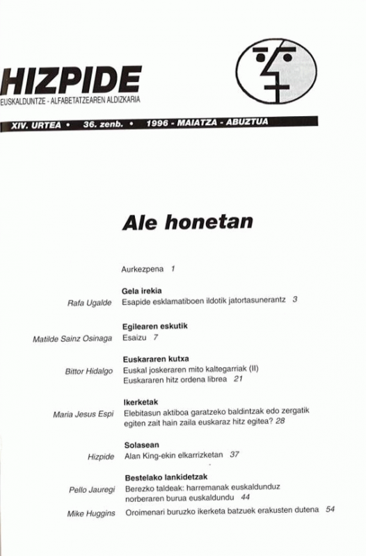 Hizpide : euskalduntze-alfabetatzearen aldizkaria / HABE ; koordinatzailea, Josu Perales