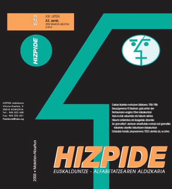Hizpide : euskalduntze-alfabetatzearen aldizkaria ; 53. zenb. (2003 maiatza-abuztua)
