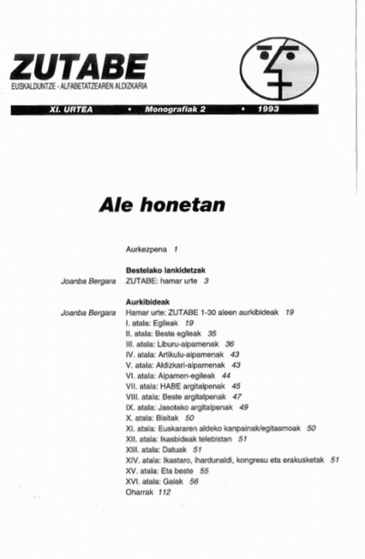 Zutabe : euskalduntze-alfabetatzearen aldizkaria. - Monografiak 2 / HABE
