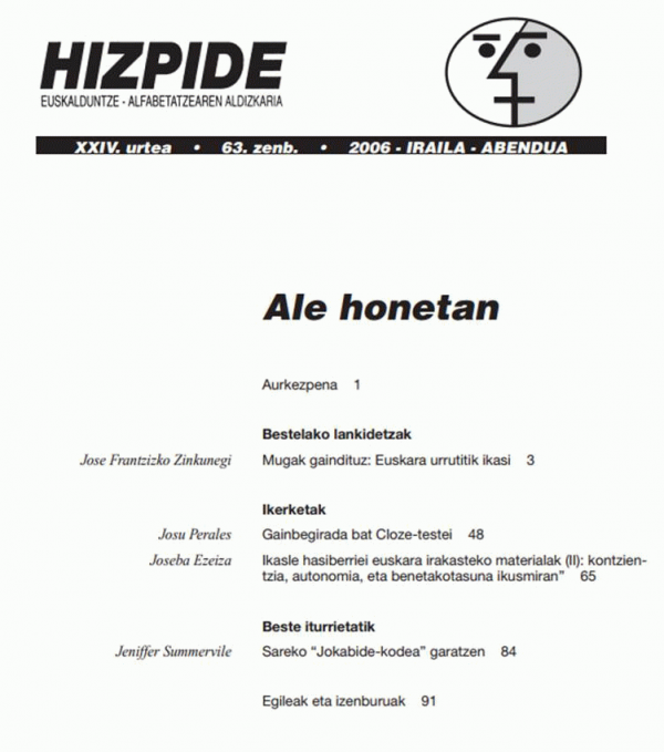 Hizpide : euskalduntze-alfabetatzearen aldizkaria ; 63. zenb. (2006 iraila-abendua)