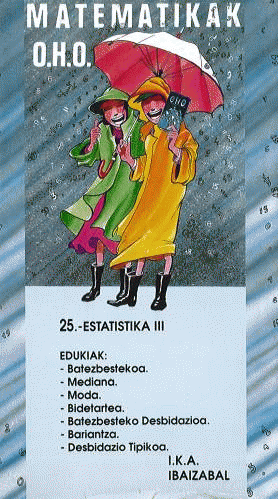 Matematikak [bideoz] OHO [Bideoa] . : Estatistika III / egileak, Mari Carmen Alzola, Sabin Gorrotxategi; laguntzaileak itzulpenetan, Ramon Etxebarria ... [et al.] ; grabaketan, Mari Carmen Alzola (bizkaieraz), Koro Munduate (batuaz)
