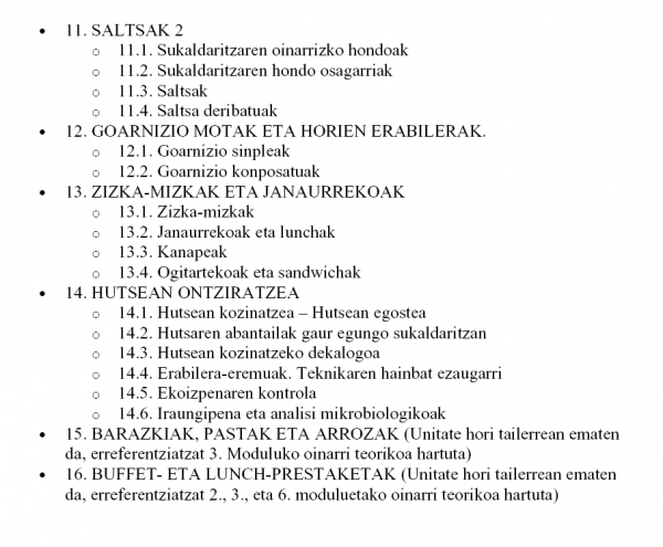 - Sukalde zuzendaritza (Heziketa zikloa). Goi maila