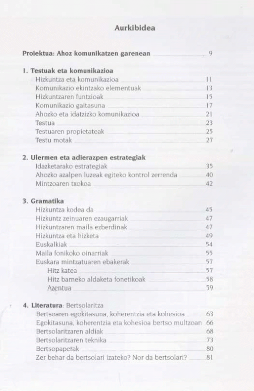 1.- Hizkuntza eta komunikazioa, 2.- Elkarrizketa testuak