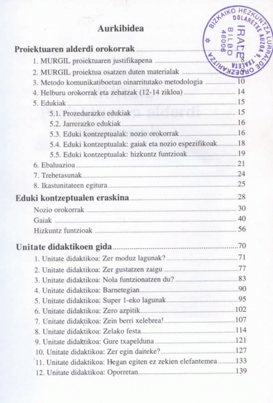Murgil: Euskal Hizkuntza eta Literatura : DBH 1 . Irakaslearen gida didaktikoa / Celia Ganzabal, Eduardo Pérez, Nekane Sagastume
